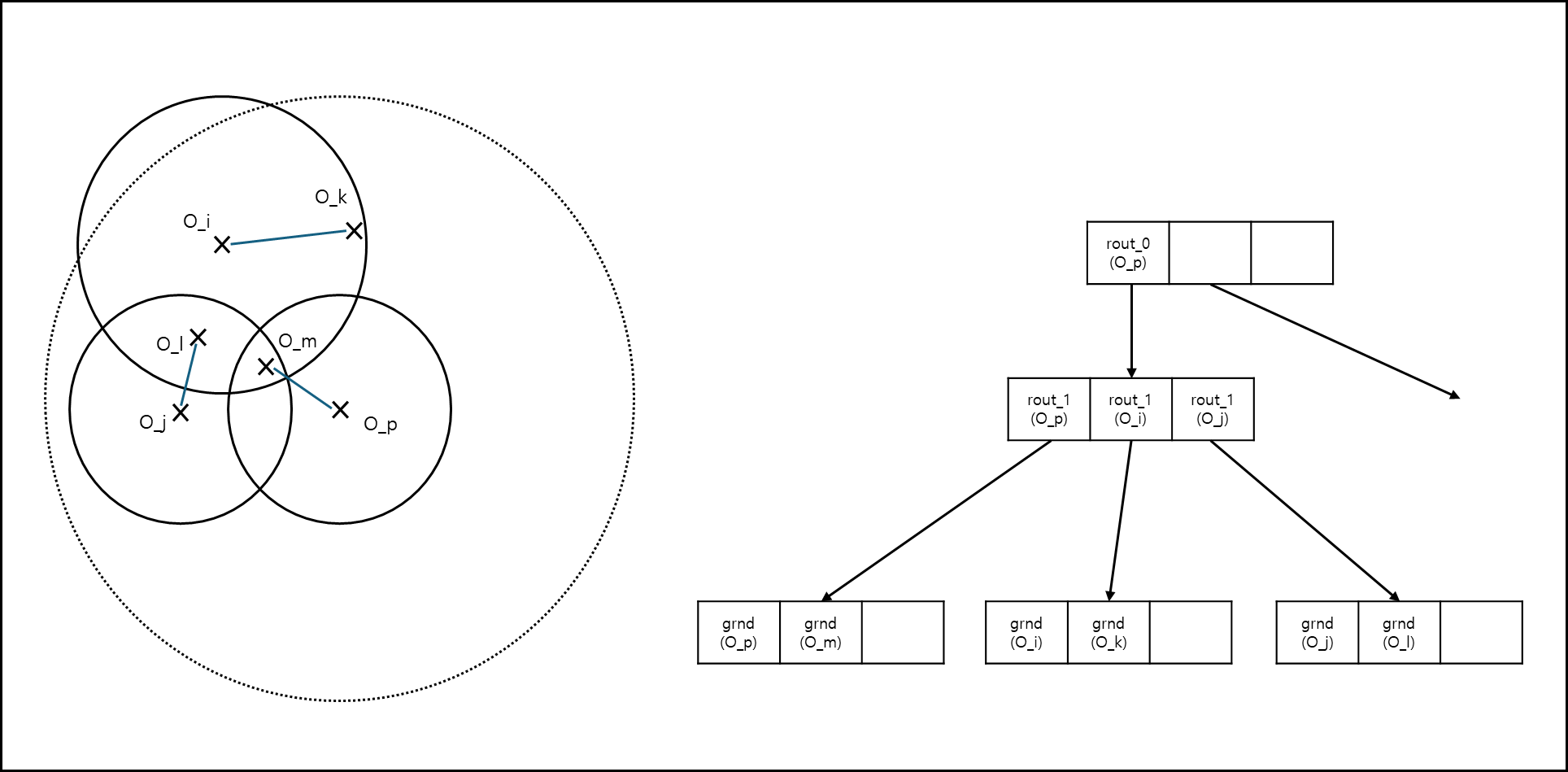 - 상위 노드의 Pivot과 거리 : 상위 노드를 이루는 원과의 중심부와의 거리를 말하며 해당 node가 ROOT일 경우에는 이 값이 없다.